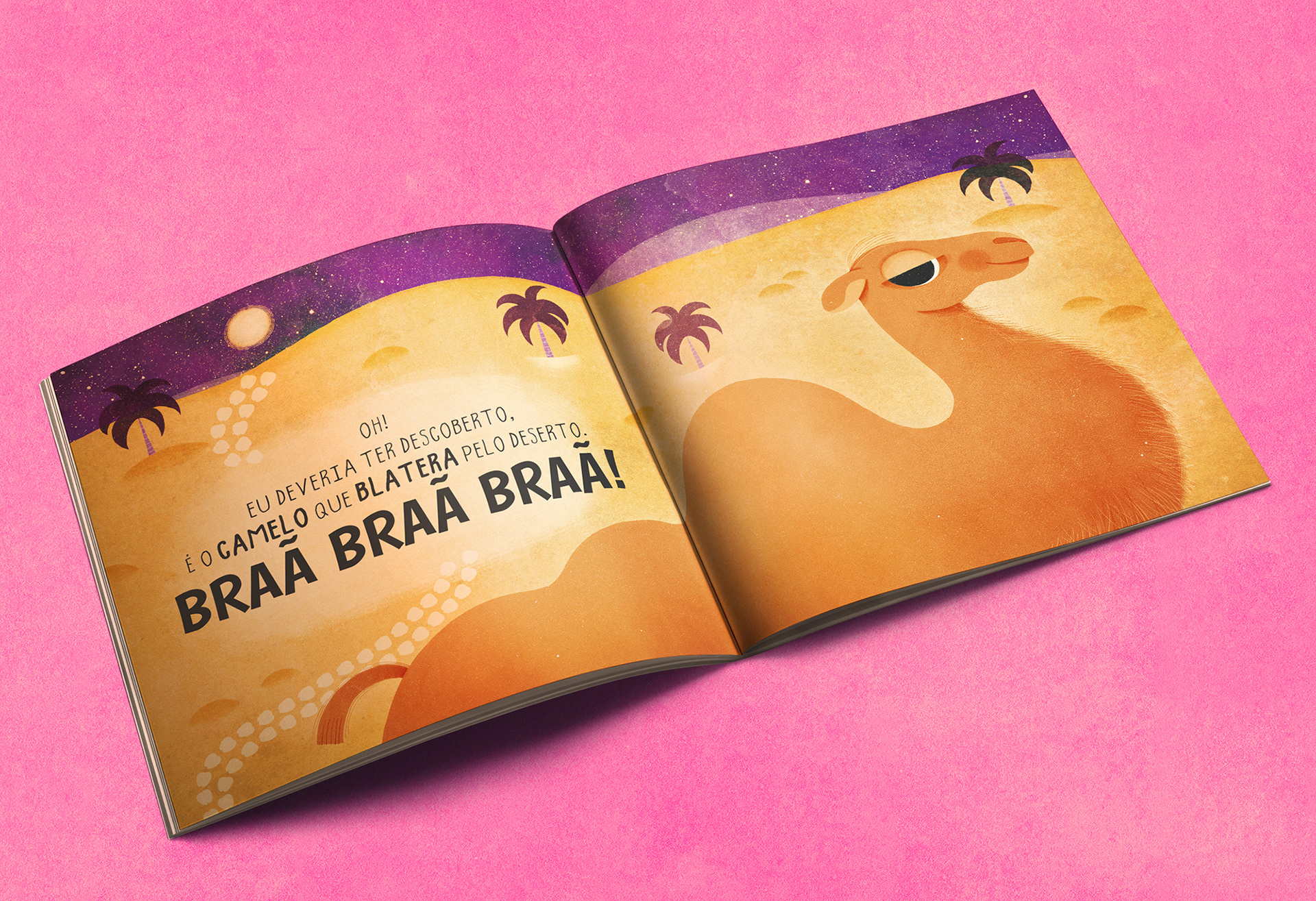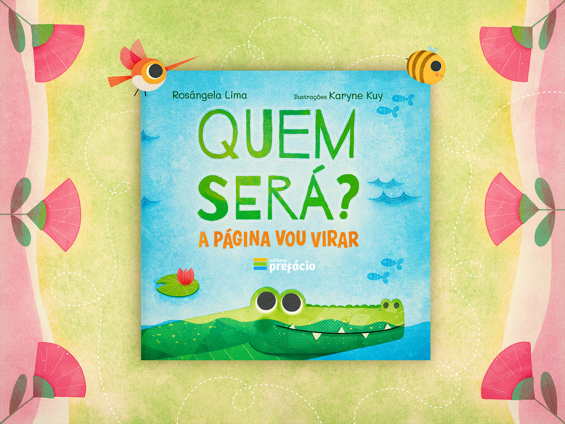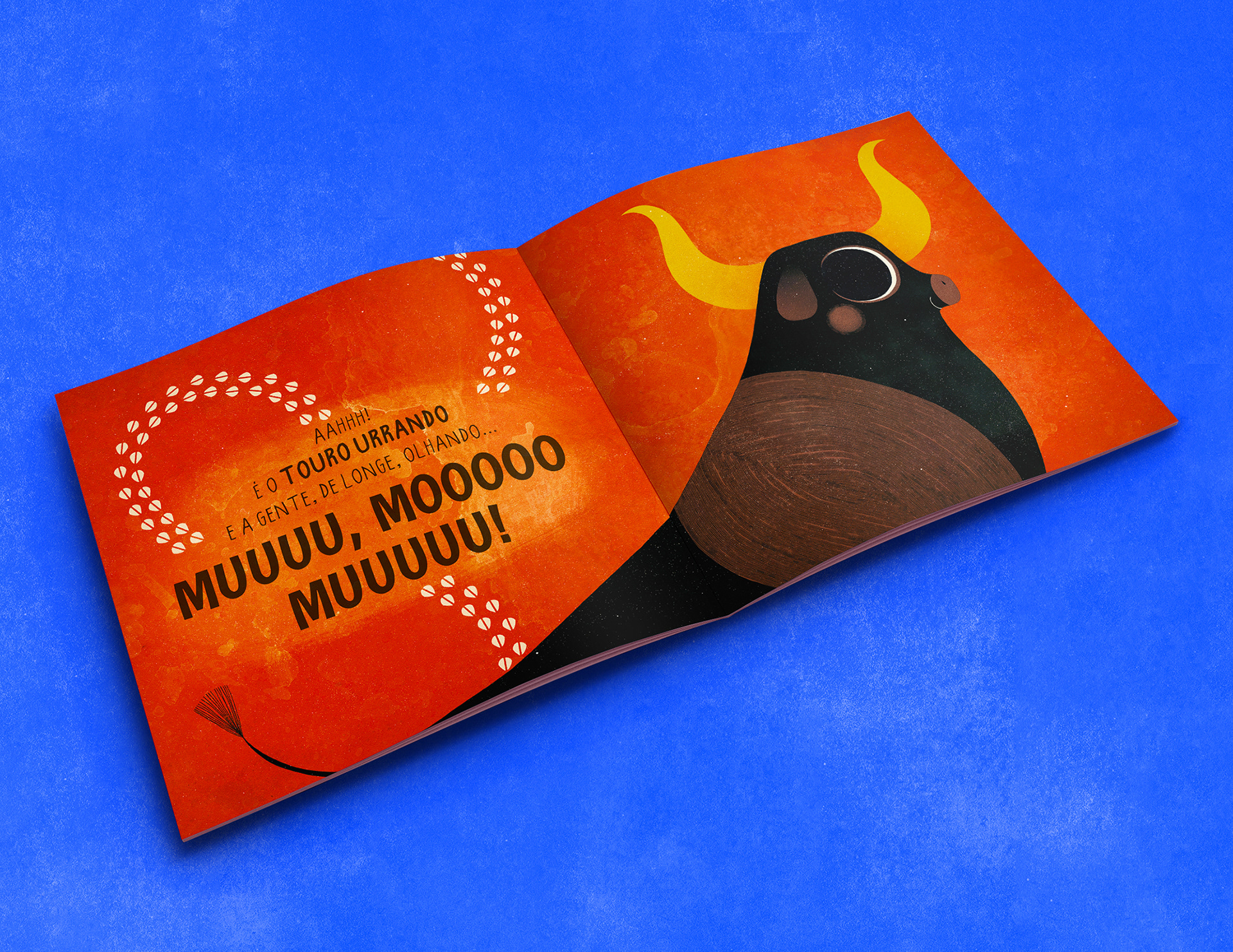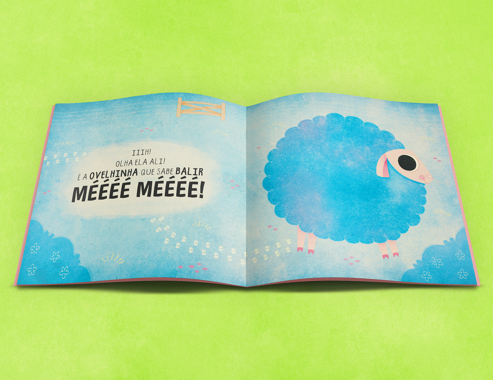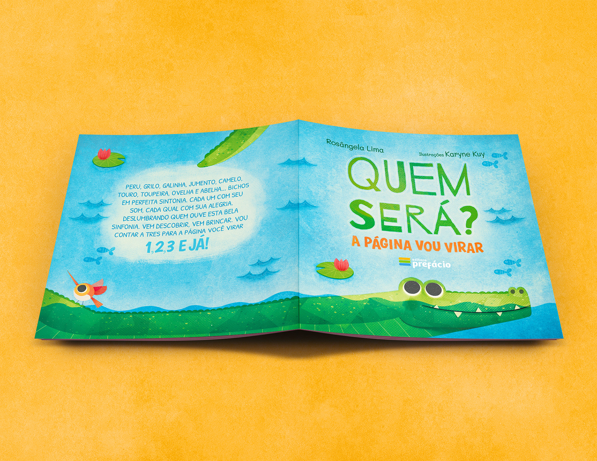 PT: O livro brincante "Quem Será? A Página Vou Virar" explora o universo animal por meio de uma narrativa rimada e interativa, repleta de onomatopeias que estimulam a imaginação infantil. Os sons e pegadas dos animais servem como pistas para que as crianças adivinhem o próximo personagem, facilitando a memorização e a compreensão auditiva, elementos importantes para leitores de 3 a 5 anos. As ilustrações coloridas complementam o texto, ajudando as crianças a associarem sons e imagens de maneira lúdica. O projeto gráfico cria uma experiência envolvente, incentivando a participação ativa. A disposição das ilustrações e o uso vibrante de cores tornam o livro cativante, promovendo a autonomia dos pequenos leitores, que conseguem explorar a história a partir das associações visuais. Projeto gráfico (tipografia e diagramação inclusos), direção de arte e ilustrações são assinados por mim com muito carinho.
